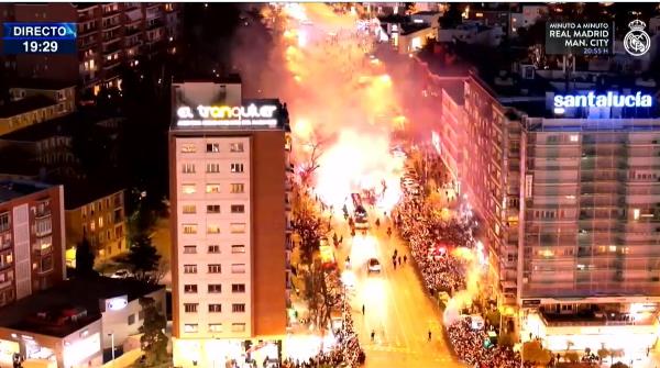 Pristalice domaćeg kluba priredile su špalir autobusu sa igračima i stručnim štabom na putu ka stadionu „Santjago Bernabeu“.