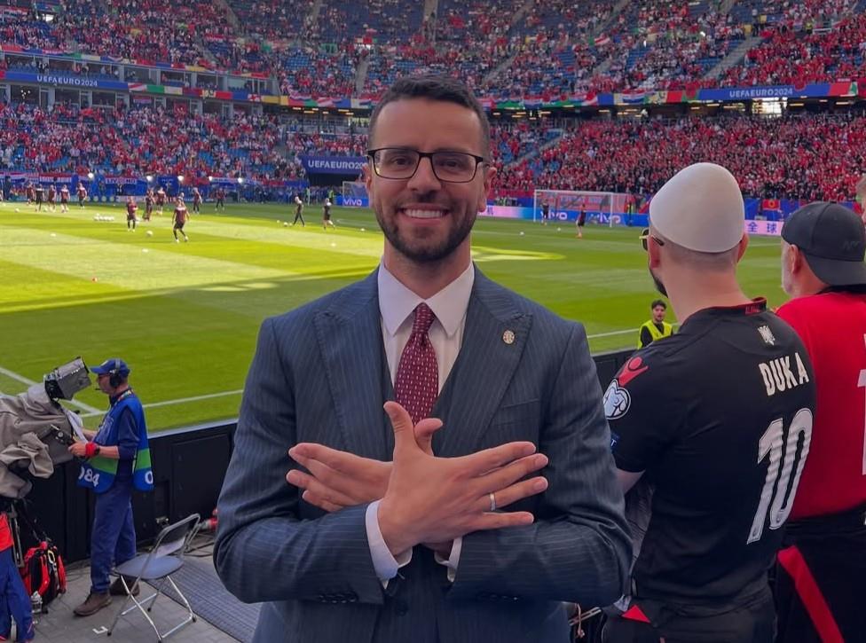 Albanski novinar Arlind Sadiku koji je tokom Evropskog prvenstva provocirao srpske navijače na sramotan način, nastavio je sa provokacijama i tokom meča u Tirani.