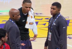 Naime, jedan navijač Los Anđeles Lejkersa udaljen je iz dvorane nakon verbalnog sukoba sa Raselom Vestbrukom tokom utakmice.