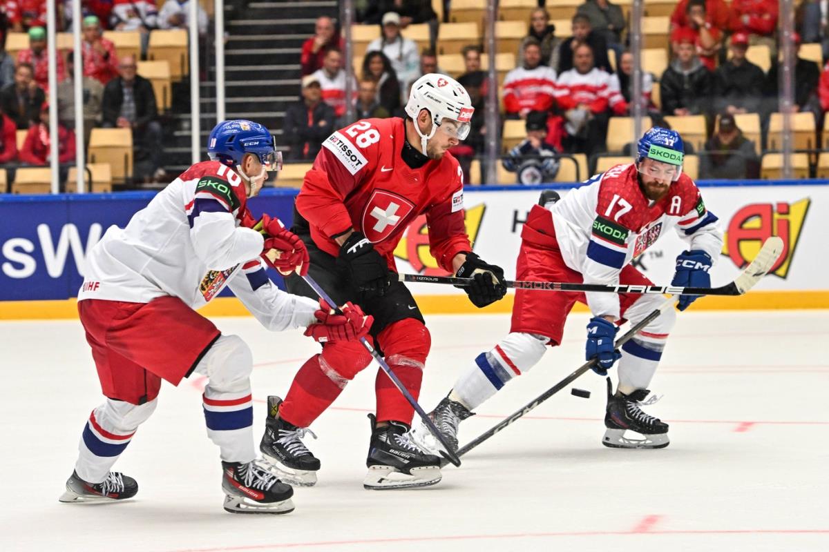 Hokejaši Češke pobedili su danas u Herningu posle produžetka selekciju Švajcarske sa 5:4 (1:2, 2:0, 1:2, 1:0), u utakmici prvog kola Grupe B na Svetskom prvenstvu.