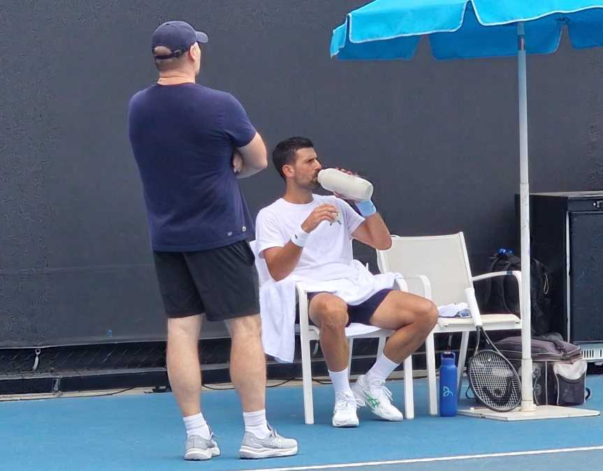 Na treningu uz Novaka opet je i glavni trener i analitičar Boris Bošnjaković, blago prehlađen prethodnih dana. Kako je ovo vreme alergija, nalik evropskom letu, i Novak je u dva maha u pauzama istresao nos – ali se po njegovom besprekornom kretanju, udarcima i odličnom raspoloženju ne vidi da je posredi išta više od reakcije na alergene.