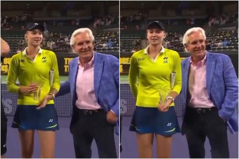 Elena Ribakina se našla u, blago rečeno, neprijatnoj situaciji, prilikom dodele trofeja na egzibicionom turniru „Ajzenhauer kup“ koji se održava pre Indijan Velsa.